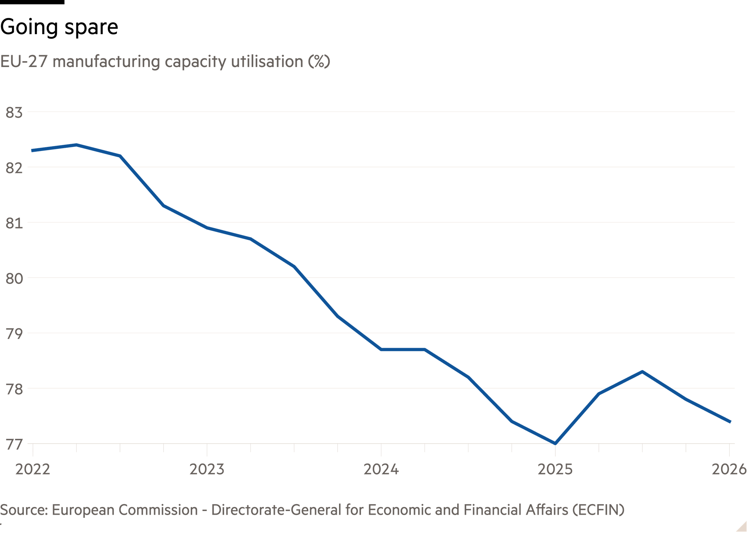 这种说法不无道理。欧洲的工厂并不那么景气:根据欧盟统计局的数据,制造业产能利用率仅为77%,而且裁员人数还在不断攀升。在欧洲工业重镇德国,甚至连一家香肠厂都已关门歇业。与此同时,民众对汽车的需求正在减弱,而各国政府却在军备方面投入了更多资金。