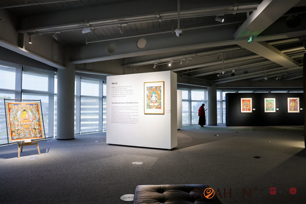 在高速运转的大虹桥区域,70多幅凝聚了画师经年累月心流的唐卡作品为“N+艺术中心”的展览空间带了格外的平和与静修氛围。