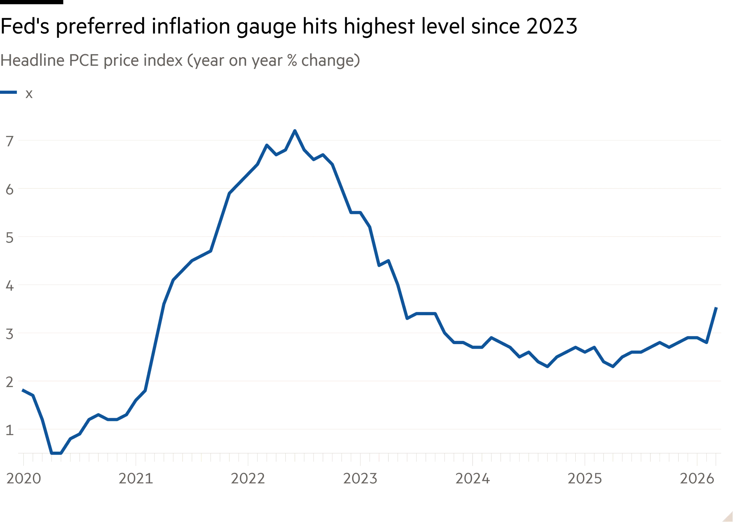 美联储用于其2%通胀目标的总体个人消费支出(PCE)通胀率上月升至3.5%。